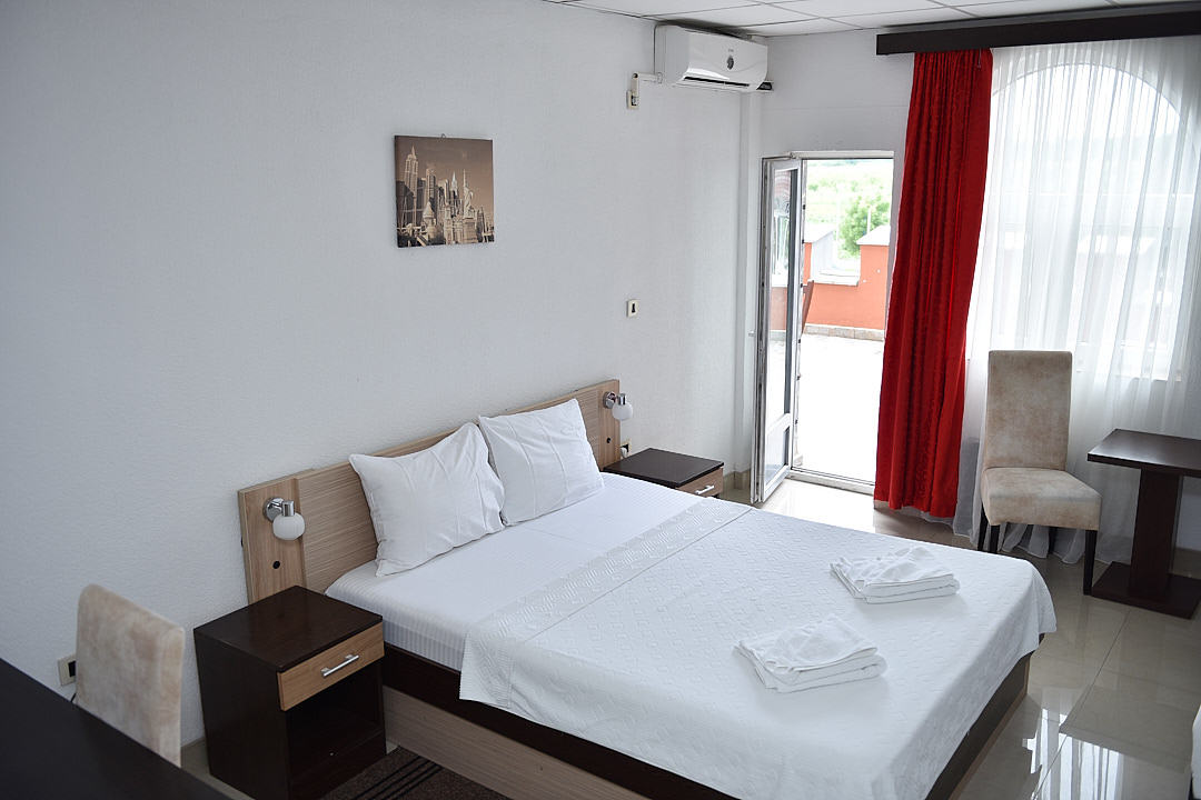 - Sadržaji: garderober, klima uređaj, mini bar, radni sto, sef, telefon, termos za kafu i čaj, TV sa osnovnim kanalima, wifi internet